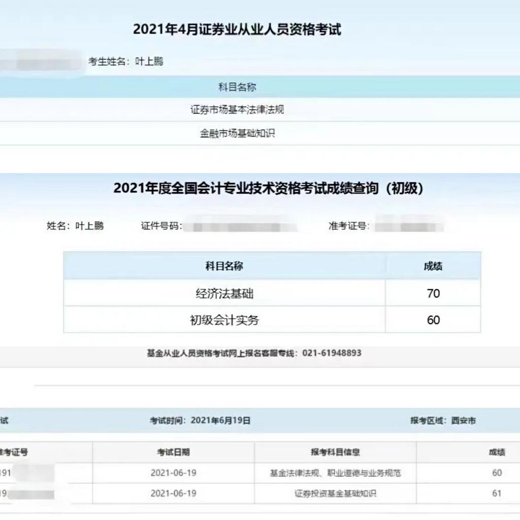 在这四年短暂的学习生涯里,我不仅能够坚持完成老师所布置的每一项任务,认真学好自己的专业知识,还能够在课余时间里,积极参与各类社会实践工作,考取各类专业相关的证书。大学阶段,曾先后参与过中国建设银行重庆分行、作业帮教育科技(北京)有限公司、Fordael等企业所组织的社会实践工作,同时我还考取了英语四级、计算机二级、初级会计职称、证券从业、基金从业、银行从业等专业资格证书。这不仅丰富了我的校园生活,更让我收获了前所未有的成长。