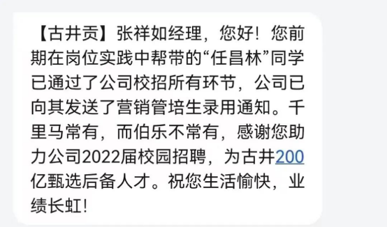 我还想给大家分享一种人生态度。学习不好、能力不够和没有资源等等你能想到遇到的让你放弃的理由,请在这时候想起:人生就像马拉松,你才离开起点5公里而已,所以还来得急,用咬定青山不放松的态度去坚持。在校的学弟学妹们:不要让不想学、不感兴趣、努力无用论等等原因成为你整天在学校除了上课就是打游戏和睡觉的理由。