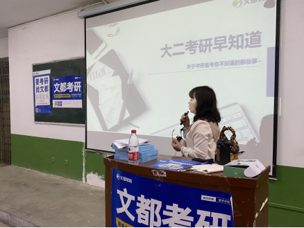 为了给有意向考研学子们提供更多的考研帮助,学校于2023年4月13日晚七点在北区东阶一教室,举办了“大二考研早知道”主题讲座,本次讲座由文都教育高端咨询师、资深规划师黄青娟老师主持,我院全体大二同学参加了本次讲座。