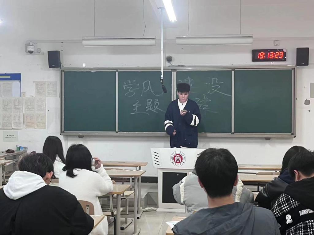为进一步加强和改进学风建设,大力弘扬优良学风,激发学生学习动力,促进学生健康成长和全面发展,3月23日晚,国际经济学院2022级大数据管理与应用B2201班开展“共创优良学风”学风建设主题活动。