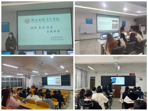 为弘扬诚信、感恩、励志美德,进一步加强同学们的诚信感恩意识,培养诚信感恩行为,进一步推动学校的思想政治建设工作。11月24日国际经济学院2020级各班分别组织召开了“诚信 感恩 励志”主题班会。本次会议由各班团支书主持召开,2020级全体同学参加。