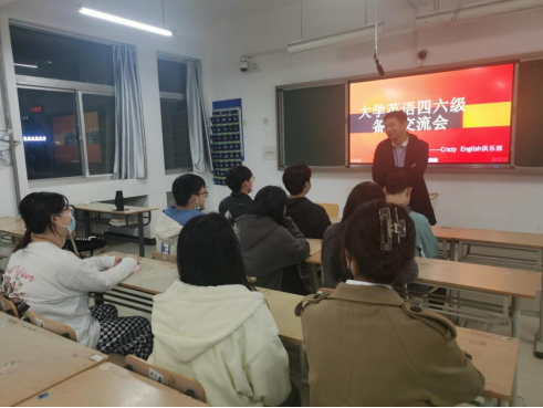 大学英语四六级考试将至,国际经济学院Crazy English俱乐部以“大学英语四六级备考交流会”为主题于10月30日晚上19:00在2教417教室举行活动。指导老师刘翔以及俱乐部成员参加了此次交流会。