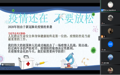 金秋已至,微风习习,我校迎来2022级本科新生,为切实做好疫情防控常态化工作,提高新生疫情防控意识,国际经济学院于9月20日晚19:00开展“疫情防记心头”主题教育活动。2021级辅导员龚子腾为此次活动的主讲人。