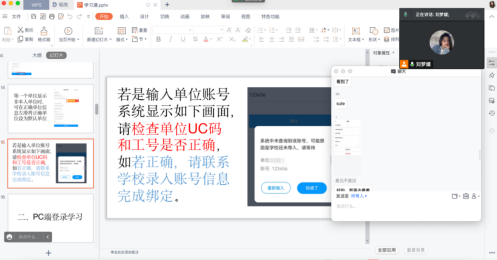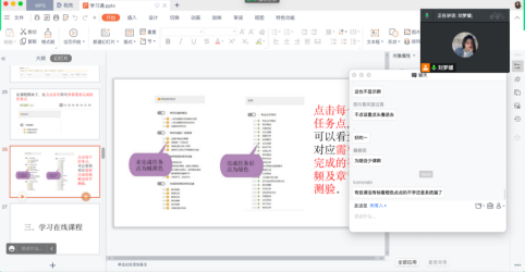 首先,吴婷婷讲解了新生开学后的学习任务及计划,叮嘱同学们一定要做好计划,有序进行,按时完成老师安排的学习任务。随后,刘梦媛详细地为新生讲解了线上学习系统的使用方法和流程。刘梦媛针对学生绑定单位信息方面的注册登录问题给出相对应的解决方法,并在登陆成功后依次介绍了课程学习进度、考核比例等日常学习所需常规应用。她认真指导同学们如何在系统中查看课后老师下发的资料,并叮嘱同学们按时完成以便保证成绩。最后带同学们学习了在线课程的使用:加入课程、线上资源、通知公告、线上作业、课程签到以及线上考试等。同时,针对学弟学妹各类问题以及不解的地方进行了一系列解答。