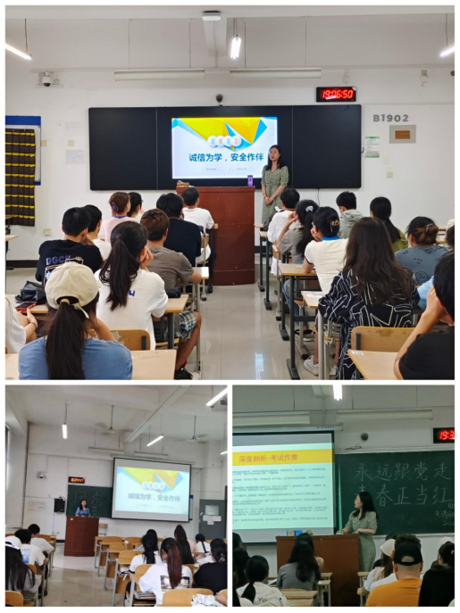 最后,龚老师就“诚信为学,安全作伴”这一主题与同学们进行了深刻交流,谈到了同学们的诚信意识和人身安全问题,提醒同学们要树立诚信意识,筑牢安全防线。通过本次会议,同学们对考试作弊的危害和重修文件有了深入的了解,培养了同学们以德立身、明礼诚信、自强不息的精神。