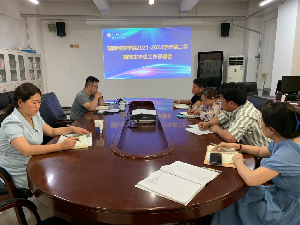 2022年6月21日上午,国际经济学院组织召开期末学生工作专题会议,学院党总支副书记路敏及全体辅导员参加会议,办公室主任荣超主持会议。