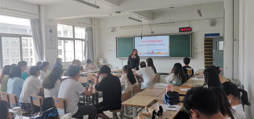 对于大三年级学生,即将面临是否能够顺利完成学业,顺利毕业的压力,因此,本次班会再次围绕学校下发的《陕西国际商贸学院学士学位授予实施细则》和《陕西国际商贸学院本科生学业预警实施办法》进行学习和解读。首先,通过学士学位授予实施细则的学习,使同学们从思想上深刻认识大学学习的紧迫性,从行动上不断改进自己的不足之处,为毕业年打好基础,不留遗憾。