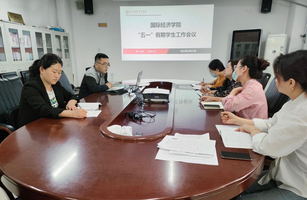 为做好 2022 年“五一”假期学生管理工作,加强学生疫情防范和安全意识,确保学生人身财产安全,维护校园安全稳定,4月27日上午,我院组织召开“五一”假期学生工作会议,学院党总支副书记路敏、办公室主任荣超以及所有辅导员参加会议。