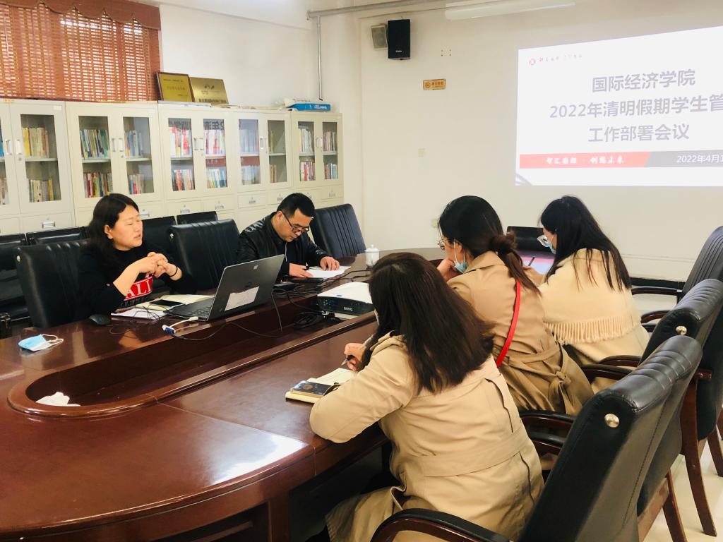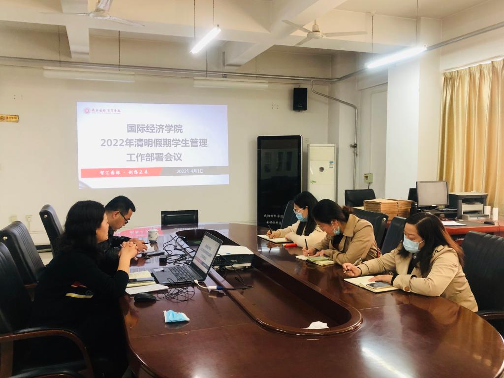 为做好清明节学生管理与疫情防控工作, 2022年4月1日下午,我院在西咸会议室召开2022年清明假期学生管理工作部署专项会议。本次会议由学院党总支副书记路敏主持,办公室主任荣超及全体辅导员参加。
