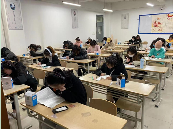 模拟考试对于英语复习来说特别重要,班委们每周安排一次四级模拟考试,要求所有同学必须参加。通过良好的学习氛围带动班级的每一位同学都能够积极备考,做好充足的准备。俗话说考场如战场,只见每个人都埋头做题就似是一个个在低头沉思的哲学家,考试的时候是最安静的时候,每人都全神贯注,目不转睛的盯着每道题。大家大脑飞快运转,手紧捏着笔,快速的写着,时而翻纸的声响在其中荡起了涟漪,划破了这个氛围,打破了这个节奏,却也在笔尖的忙碌下恢复常态。这里想说一句真美好~