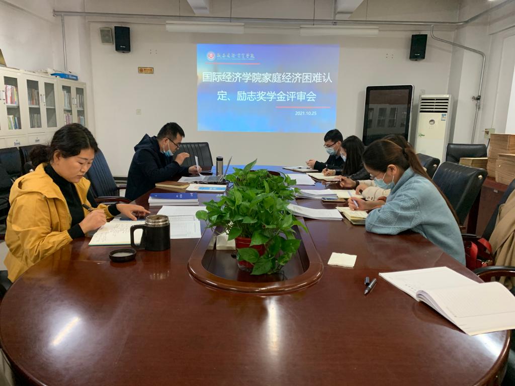 10月25日上午10点,国际经济学院组织召开2020--2021学年国家励志奖学金评审会议于西咸会议室进行评审。会议由办公室主任荣超主持,党总支副书记路敏及全体学管人员参加了会议。