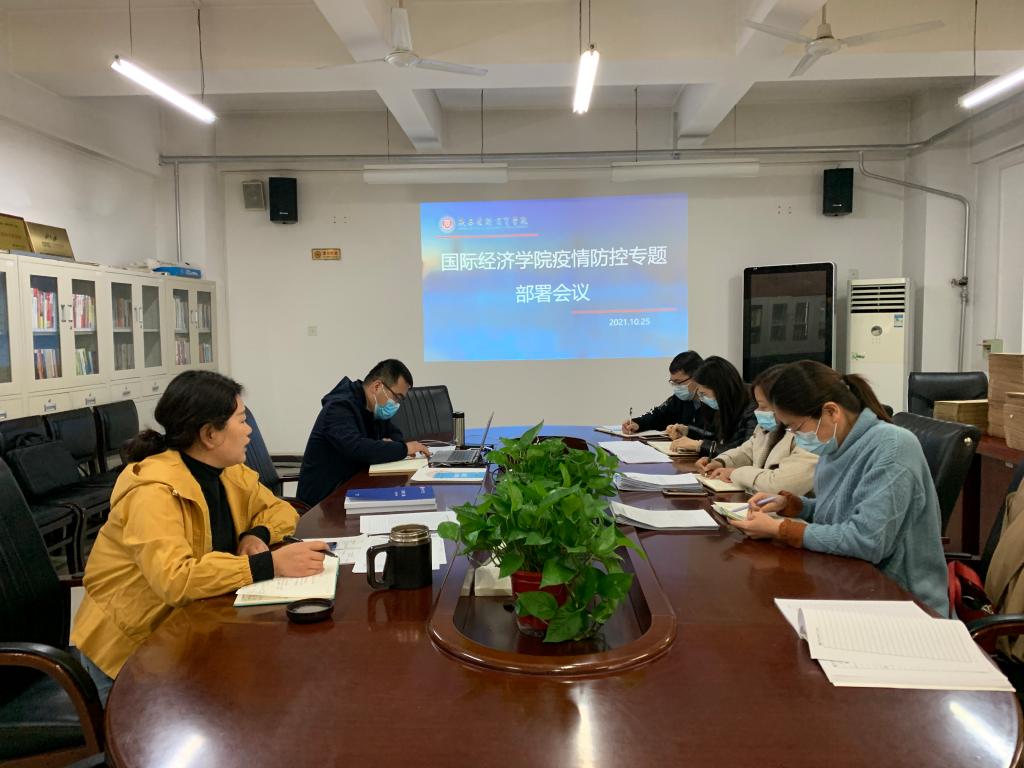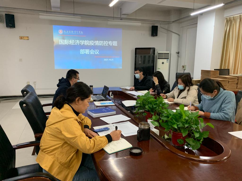 为深入贯彻落实上级安全及疫情防控会议精神,全力抓好疫情防控工作,保障师生的生命健康,10月25日上午,国际经济学院在西咸会议室召开了疫情防控专题部署工作会议。会议由学院党总支副书记路敏主持,办公室主任荣超参加及全体学管人员参加了会议。