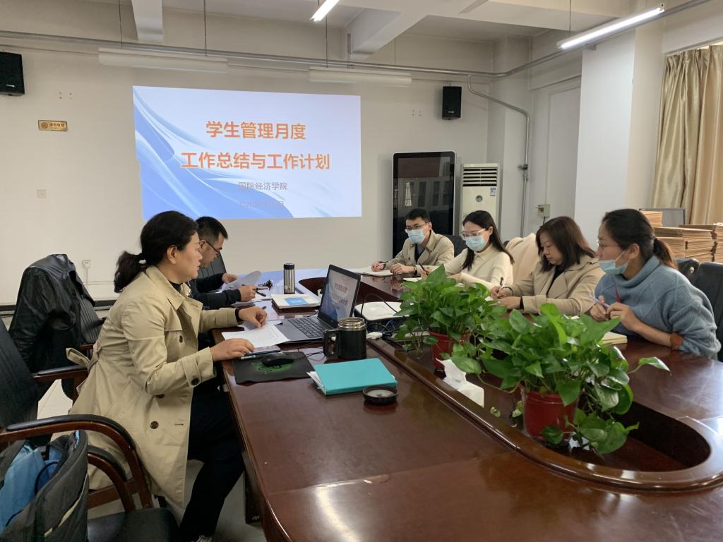 按照本年度学院学生管理工作计划,于10月18日上午10点在学院西咸会议室召开学生管理工作月总结例会。会议由学院党总支副书记路敏主持,办公室主任荣超及学院全体学管人员参加会议。
