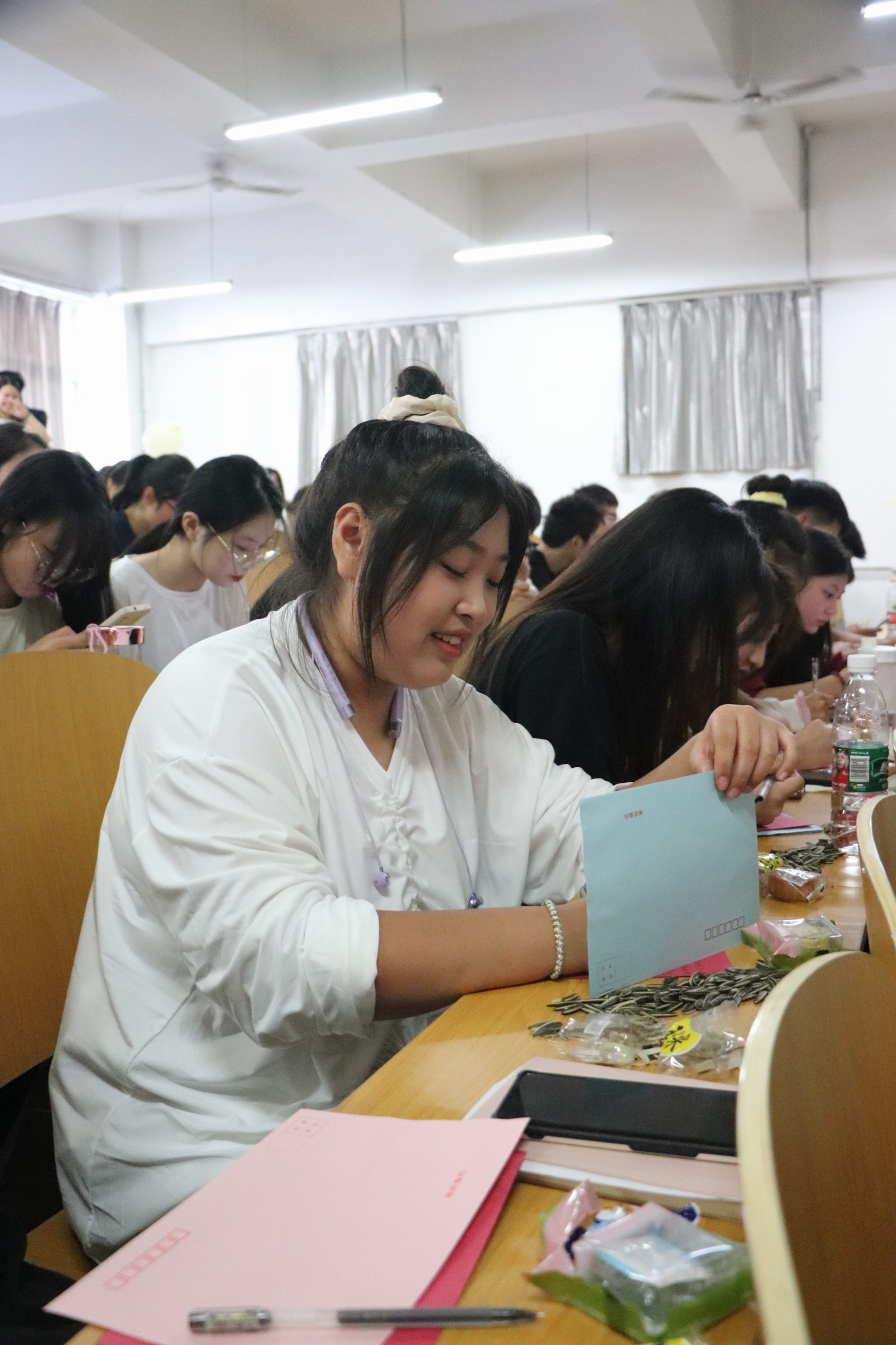 “从前车马很慢,书信很远”,书信传情,深情话语,主题活动特别设立了“见字如晤,纸短情长”情寄书信活动,通过邮寄书信传递中秋佳节心中最深的思念。活动期间由学院学生会和团总支干部发放信纸和信封,参与活动的同学可以在现场写出对亲人、朋友、师长等人的信件,最后由学生干部统一收集,统一投递邮寄。信件最终将会穿过千山万水去往寄信者的家乡。活动中通过诵读中华经典、歌舞等形式,让同学们感受到了传统节日所蕴含的深厚文化内涵,同时营造出了浓厚的节日氛围,以此弘扬民族精神和优秀传统文化。
