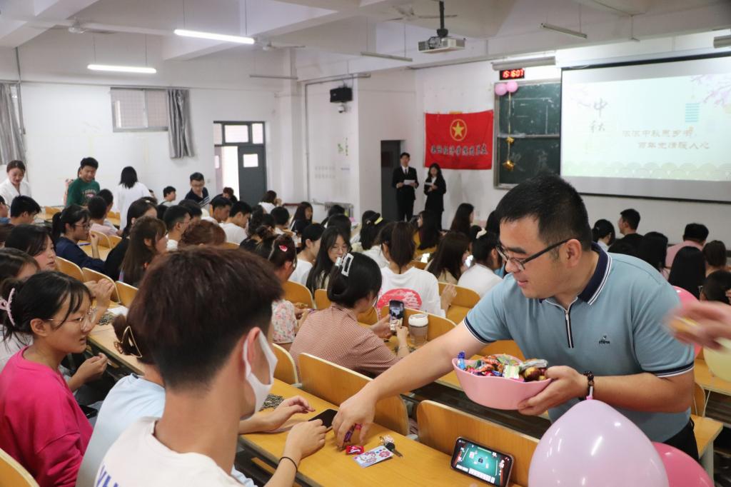 “好时节,愿得年年,常见中秋月。”中秋节,又称八月节、月光诞或团圆节,是我国仅次于春节的第二大传统节日。为进一步弘扬中华民族优良传统文化,我院值此中秋佳节放假期间,组织假期留校学生共同欢度“中秋佳节”。本次活动由学院团总支,学生会,新媒体,悦享ing四个学生组织自发承办,于2021年9月21日在2教227教室召开。国际经济学院办公室主任兼学生科科长超荣超老师,学生科干事常伟老师,2021级辅导员李琦老师及中秋节留校学生参与此次活动。