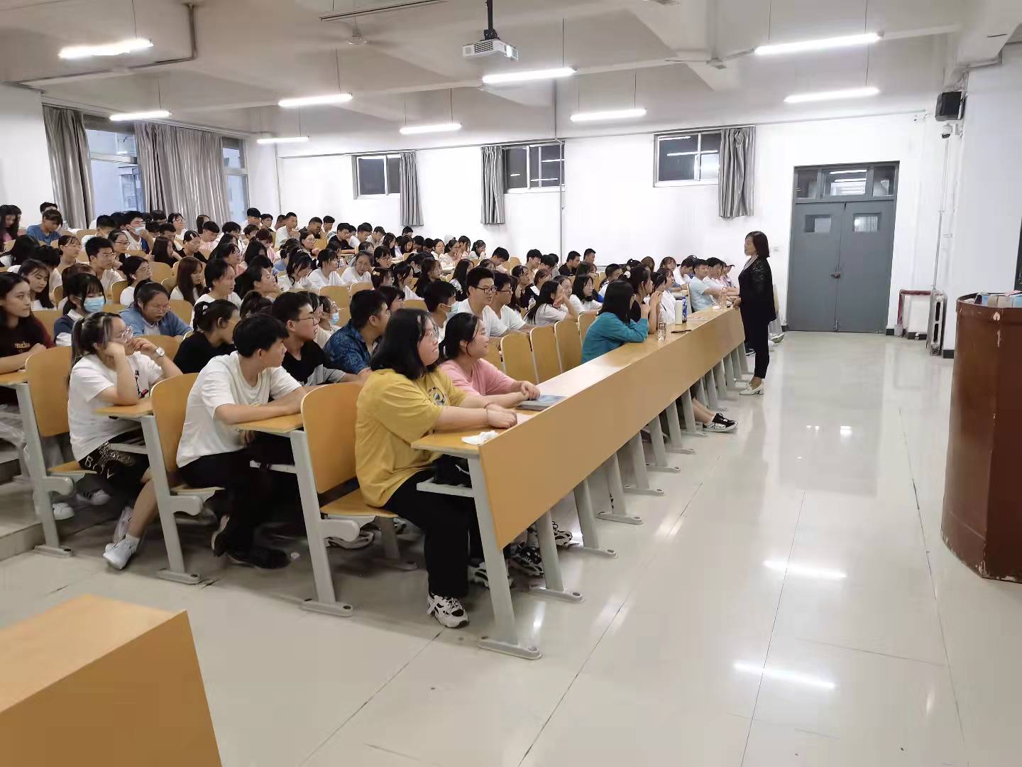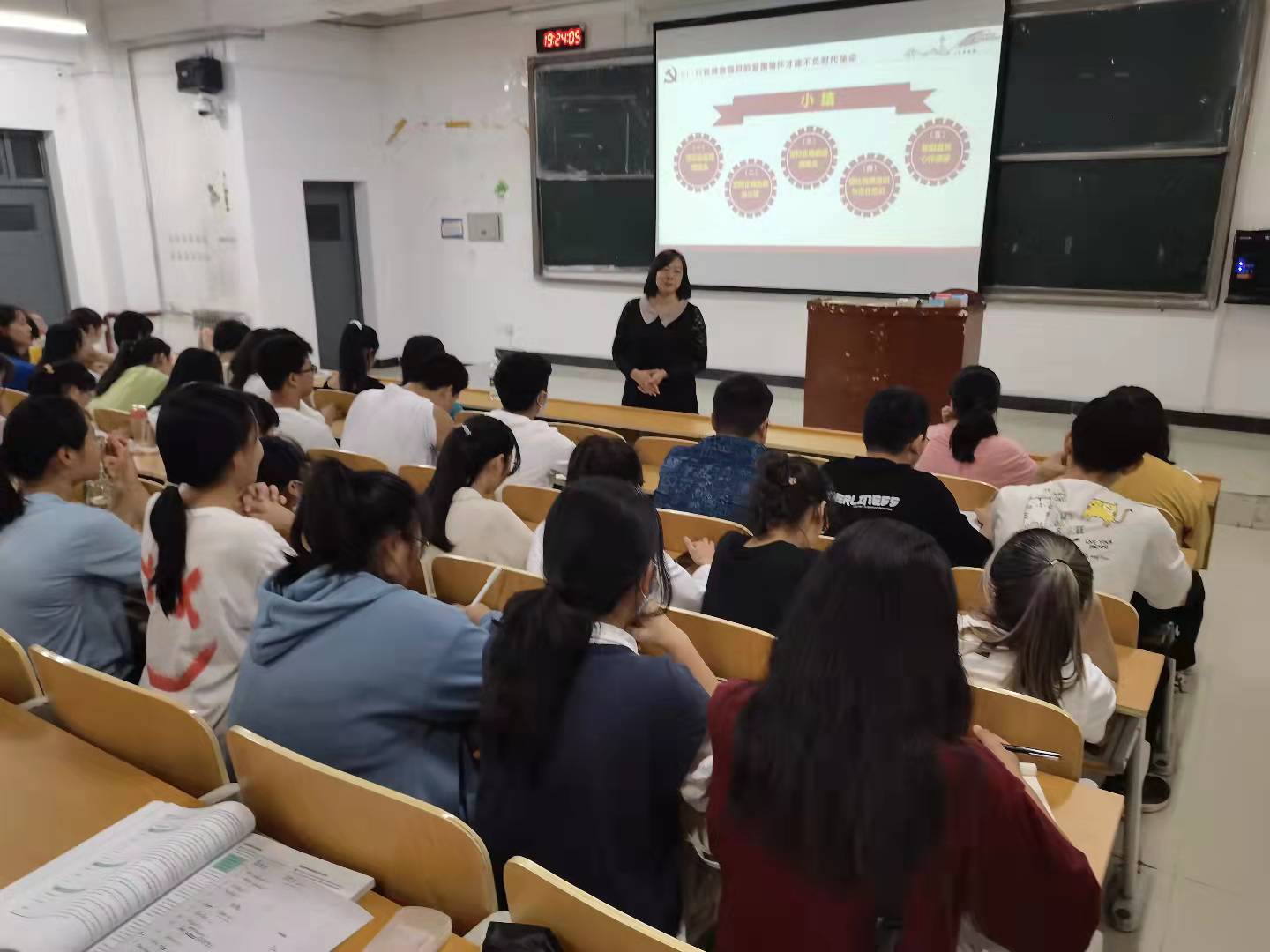 李老师主要围绕培养学生的爱国情怀、树立正确的“三观”,努力实现个人价值与社会价值,以及大学期间如何提升自身综合素质和竞争力,从而实现全面发展几个方面展开。本次活动上同学们积极踊跃发言,气氛活跃,效果显著。