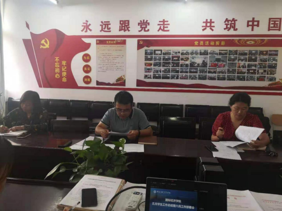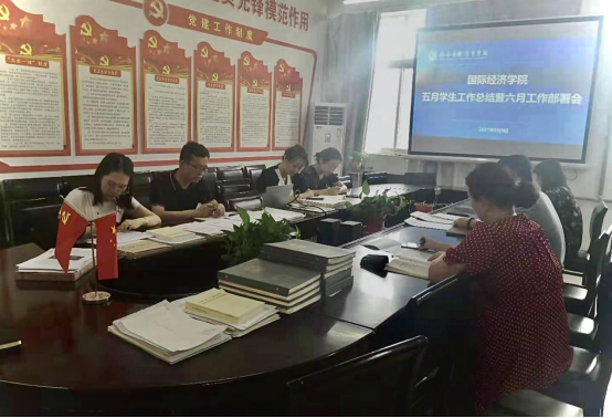 为切实加强学生教育管理工作,按照省委教育工委相关文件要求以及学校学生工作会议精神,国际经济学院于6月9日上午10:30,在党员活动室召开了五月学生工作总结暨六月工作部署会议,全体学管人员参加了会议。会议由学院办公室主任荣超主持。