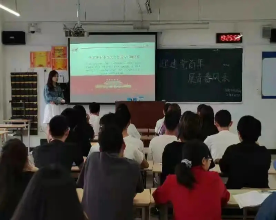 活动在庄严的团歌声中拉开帷幕,各班以PPT演讲与观看视频相结合的形式开展本次团日活动。活动开始,各班团支书带领同学们观看建党百年相关影像,通过视频让大家重温党的发展历程中经历的艰难险阻,加深对中国共产党的了解。各班团支书与同学相互配合,以问答的方式让同学们发表各自对党的百年历史的理解,同学们纷纷表示作为新时代的青年,应该勇担历史重任。