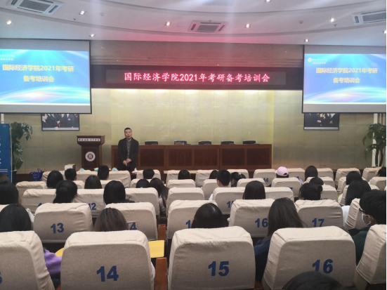 2021年3月17日晚19:00,国际经济学院在学术报告厅举行“2021年考研备考”专题培训。本次会议特别邀请文都考研资深辅导老师薛玲老师来我院进行考研专题讲座,我院全体辅导员、各年级有考研意向的200余名学生参加了培训。会议由国际经济学院副院长冯明副教授主持。