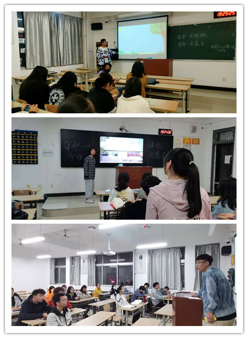各支部团支书采用PPT汇报的形式向同学们详细展示了现实生活中常见的几种环境问题,并向同学们介绍了相关环保知识,还与同学们进行了热烈的互动,就如何保护环境进行了深入地研讨。同学们一致认为:一是保护生态环境已经变得刻不容缓,保护绿水青山,现在就要行动;二是从小事做起,从你我做起,坚持人与自然的和谐共生;三是坚持节约优先,坚持保护优先,践行绿水青山就是金山银山的理念。