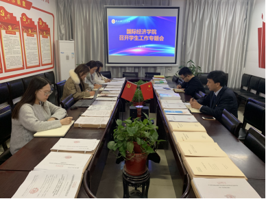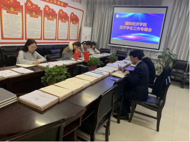 2020年11月22日上午10:00,国际经济学院党总支副书记张孝峰主持召开专题会,传达学习落实贾校长讲话精神暨辅导员素质能力大赛工作总结会议,全体学管人员参加会议。