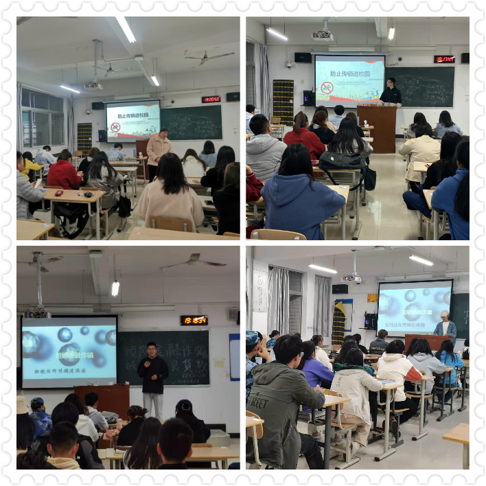 为加大防范和有效抑制传销活动进校园,增强我院广大学生对传销的辨别能力,自觉远离和抵制传销,保护我院学生的人身和财产安全,结合陕打传办发〔2020〕1 号文件精神,落实学校“防止传销进校园”活动要求,我院开展系列活动。