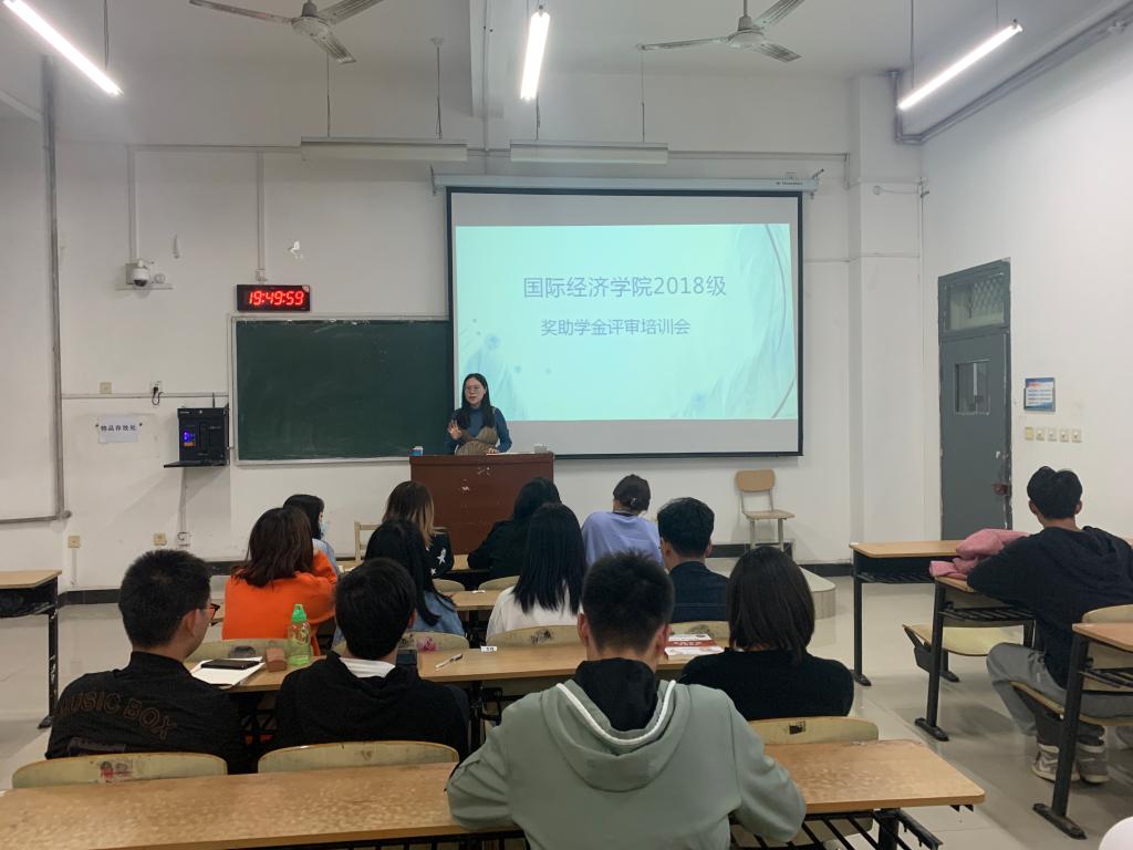 为扎实做好学生资助工作,全面推进资助育人。2020年10月26日晚19:00国际经济学院2018级辅导员李彤辉老师在2J127开展奖助学金评审培训会,2018级所有班委参会。