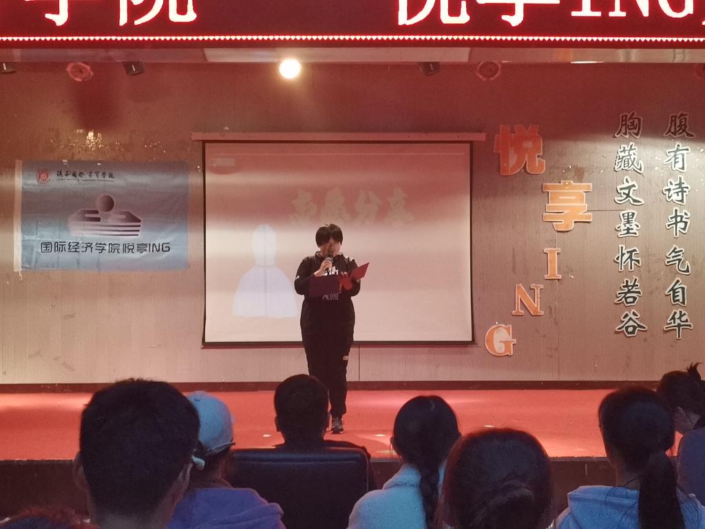 胸藏文墨怀若谷。腹有诗书气自华。为进一步弘扬抗疫精神,树立奉献与担当的信念,让学生更加深刻感受祖国的强大,深刻认识爱国主义的实质和其丰富的精神内涵。2020年11月12日晚19:00,国际经济学院“悦享ING”第十四期“抗击疫情,致敬逆行者”活动在学术报告厅三楼如期举行,学院党总支副书记张孝峰、学生科科长荣超、全体辅导员以及2020级全体学生参加了本次活动。