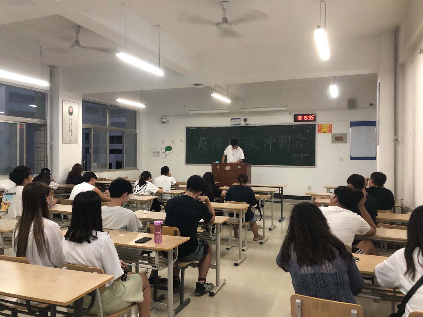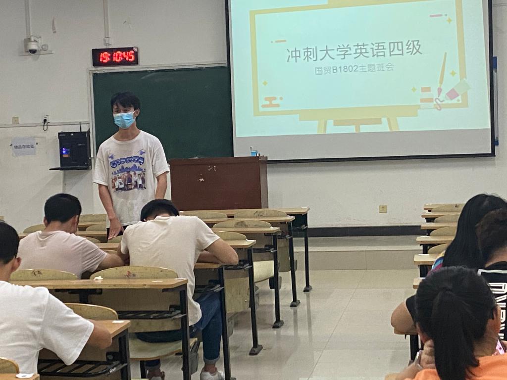 全国大学生英语四级考试临近,为了切实做好英语四级冲刺工作,帮助同学们备考,9月9日晚19:00,国际经济学院2018级辅导员李彤辉组织各班召开英语四级冲刺分享交流会。