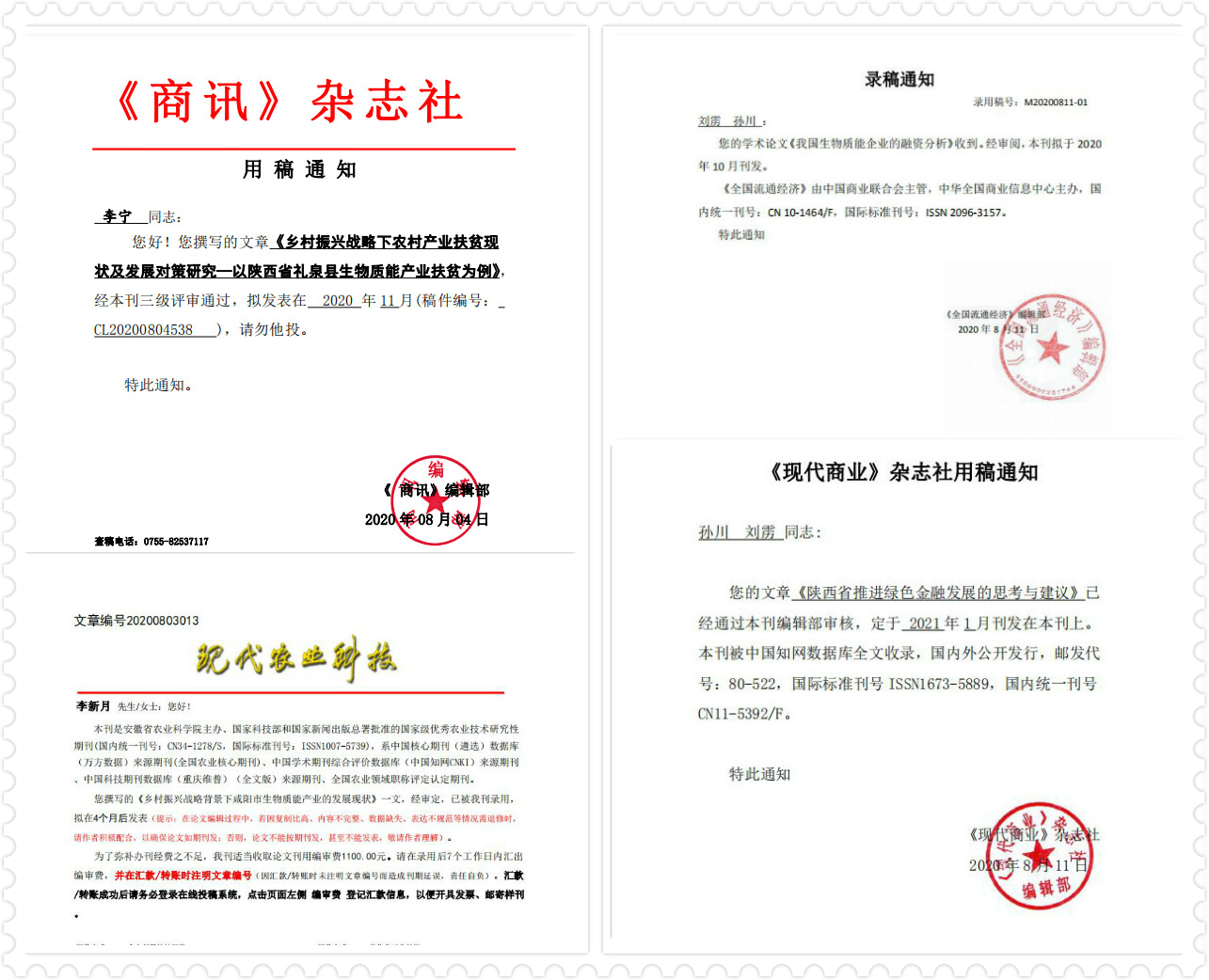 此次调研活动顺利圆满完成并取得了丰富调研成果,调研队成员结合调研项目发表了4篇学术期刊论文并完成了1篇1万余字的社会实践调研报告。其中孙川同学的《陕西省推进绿色金融发现的思考与建议》文章,已被全国中文核心期刊《现代商业》收录,并于2021年1月出刊发表。