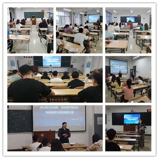 当晚,各年级辅导员以“凝心聚力共战疫,模范遵守显担当,争做健康文明校园践行者”为主题,组织开展本学期第一堂线下主题班会,教育引导同学们熟知学校疫情防控各项规章制度及要求,凝聚全体同学疫情防控共识,增强同学们战胜疫情的信心,不断提升同学们自我防范意识, 教育引导学生学习英雄、砥砺自我、发奋读书、努力成才。