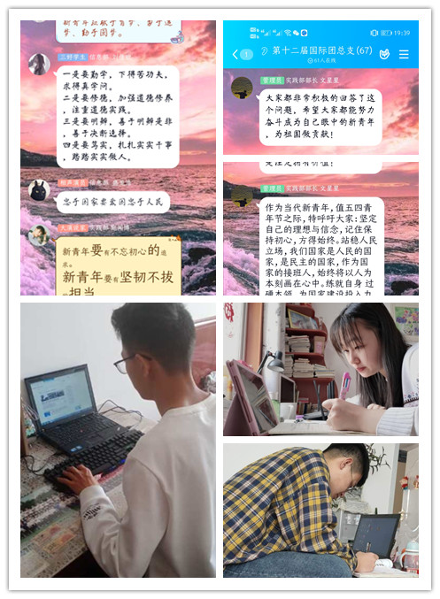 为更好传承弘扬“五四精神”,激发新时代大学生爱国意识,用实际行动在祖国建设中书写自己的青春之歌。2020年5月结合全国新冠肺炎疫情防控实际,国际经济学院团总支组织各类线上活动,迸发青年力量,更好传承“五四精神”。