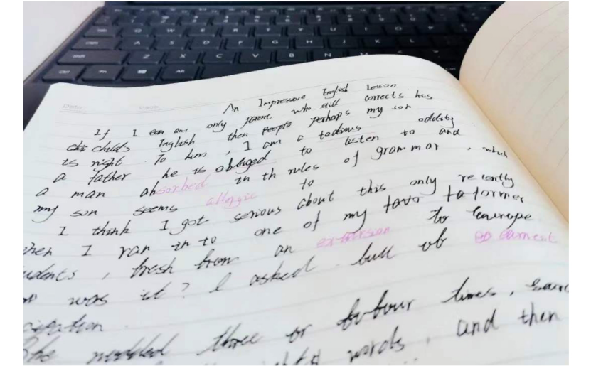 任柯颖,电子商务B1901班同学。“在这个假期,因为疫情的原因,我们都没有办法按时进入学校进行学习,但是尽管在疫情期间我们也不能忘记学习这重大任务,在老师们的精心准备下,我们开始了网课的学习,从第一天上完课大家都感觉到了,生活变得充实起来,数学、英语、电子商务…这些丰富的课程如同甘甜的泉水,让我们枯燥的假期生活滋润了起来,我们也感受到了学习带给我们的充实的幸福感。早上6点30按时起床洗漱刷牙,锻炼身体。当清晨阳光撒在洒在本子上,手中的笔杆投出一小片阴影,便感受到了内心的快乐和充实。按时完成老师布置的作业,下课后对堂所学的内容,进行加强巩固,对下节课的内容进行预习,看到视频中有搞不懂的知识点,多看几遍,线上咨询老师将它搞懂,这就是学习的快乐。课堂之余,课外活动也一定不能少了阅读经典这一环节,学习一门感兴趣的外语,练一练书法,陶冶性情,提升自己的技能,这都让我们的假期生活变得更加充实而丰富,积极而有意义,疫情期间也要精致生活啊!”