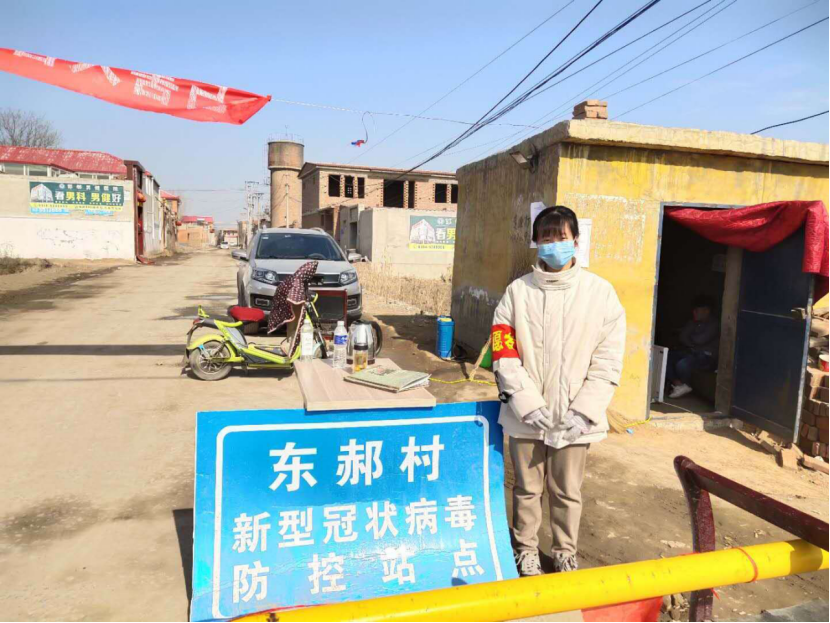 金融工程Bl901班张凯越。她在河北省邯郸市邯山区台城乡东郝村。每天站在东郝村新型冠状病毒防控站点口,为来来往往的村民测量体温,时刻关注疫情新闻,发放有关疫情的手册, 叮嘱村民出入时戴口罩,做好防护措施。