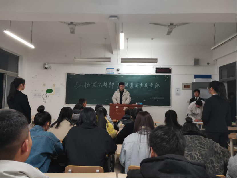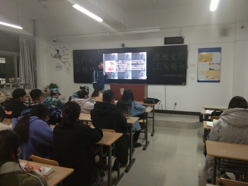 为认真贯彻教育部和省厅关于深入学习宣传和贯彻实施宪法的有关精神,落实好学校有关宪法学习工作安排,使当代大学生更好的学习宪法知识、弘扬宪法精神,厚植大学生爱国主义情怀,2019年12月4日,国际经济学院团总支组织各班支部开展“弘扬宪法精神,厚植爱国主义情怀”的主题团日活动。