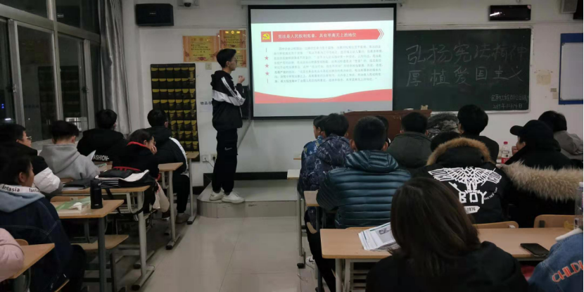 活动中,学院统一安排部署,各班级精心筹备,同学们踊跃参与。活动通过对宪法相关知识进行提问、组织互动游戏、竞答、以及列举和讲解相关案例等多种方式,使宪法走入了学生日常学习生活,向同学们传达宪法知识,从身边的事去理解宪法,增强宪法意识。