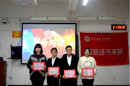本次辩论赛由初选胜出的六支队伍分为三组进行对决,比赛程序严格按照辩论赛陈词、立论、攻辩、自由辩论和总结陈词五部分进行。三组的辩题依次为:“众人皆醉我也醉/众人皆醉独醒、“全球化对发达国家的利大于弊还是弊大于利”、以及“是否以成败论英雄”三个辩题。经过激烈的唇枪舌战,正面交锋,最终获得一、二、三等奖的队伍依次是“魔王队”、“峡谷巅峰队”和“背叛者联盟队”。同时,各组都涌现出了逻辑思维敏捷、反应迅速、表达力强的优秀辩手如:蔡焕、蔡乐凡,孙媛媛等同学。