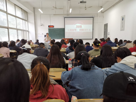 为提高同学们的学习意识,增强同学们即将迎来四级考试的紧迫感,更好的备战大学生英语四级考试。国际经经济学院组织2017级学生分别于2019年11月7日、13日下午16:00召开“认真备考 冲刺CET-4”主题班会。辅导员徐亚岚参加会议并作主题宣讲。
