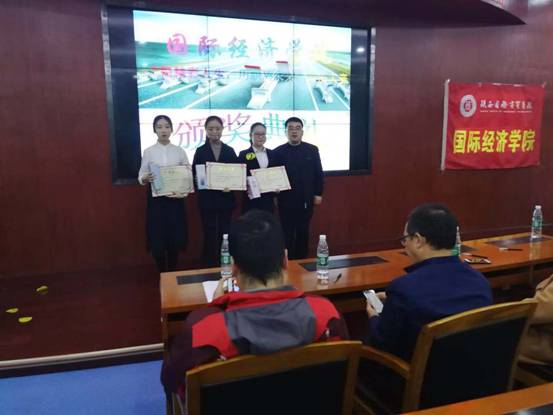 余副处、冯助理、荣科长分别为获得第一、二、三等奖的同学颁奖