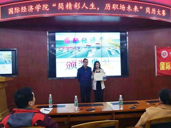 为提高全院学生就业意识,提高同学们简历制作水平,国际经济学院于11月6日19:00,在经管实验教学中心举行以“简精彩人生·历职场未来”为主题的简历制作大赛,学校招生就业处余东阳副处长、学院院长助理冯明副教授、学生科荣超、常伟、徐亚岚老师参加并担任评委,各班级学生代表200余人参加活动。