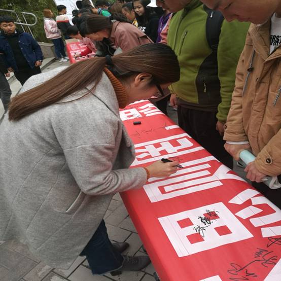 活动伊始,在辅导员徐亚岚老师“绿色消费,拒绝网贷”的倡导下,同学们一致表示要远离校园贷,乐意参与到活动当中去,并在横幅上签下了自己的名字,在拒绝校园贷的绿树上按上手印;活动期间,学院团总支权益部部长张莹及委员尹益超为在场同学列举了近年来高校发生的危害学生的校园贷案例,让同学们清楚的了解到校园贷潜在的风险,并提倡在以后的生活中远离校园贷。