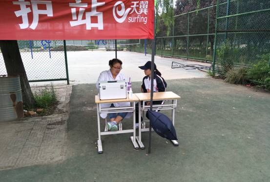 医疗保障工作是军训的重中之重。在学子们陆续列队前往训练场时,校医院的工作人员已经携带上医药箱,在附近摆好摊点,进入随时待命状态。
