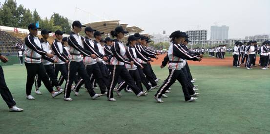 “向左转!”“向右转!”“稍息!”“敬礼!”教官们下达的每个口令,学生都迅速做出了反应。那一瞬间的整齐,使整个训练场充满了庄严的气势。最简单的动作,在训练场上无数次地重复着,学子们正学会用自己的心去真切体会军人的钢铁般意志。