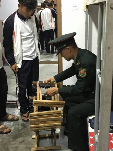 教官示范完后,各宿舍开始整理内务。同学们认真按照教官所说的方法将被子叠好,将洗漱用品摆放整齐。