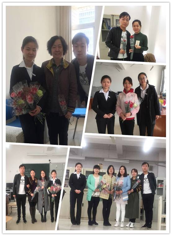 课间走廊上,身着正装的我们捧着鲜花、带着祝福穿梭在楼层的各个办公室间,整个走廊上都充斥着节日的气息。轻轻地推开办公室的门,看到我们到来,女老师们十分开心。我们双手为老师递上花束,并送上节日的祝福,老师微笑的接过,小心的呵护着手中的花。霎时间,师生们的笑脸和节日浓厚的气氛回荡在办公室中。花——献给最美的老师,感谢为我们默默地付出,祝她们永远年轻快乐!