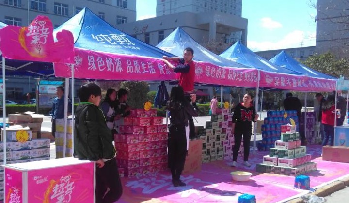 为激发国际经济学院学生的学习热情,提升学生的学术融合度,创造学生的专业成就感,努力做好“一院一品”工作。2016年3月26日-27日,我院市场营销专业协会与咸阳蒙牛乳业共同举办以“绿色奶源,品质生活,快乐赢销”为主题的蒙牛展销会在北校区怡馨苑广场拉开帷幕。