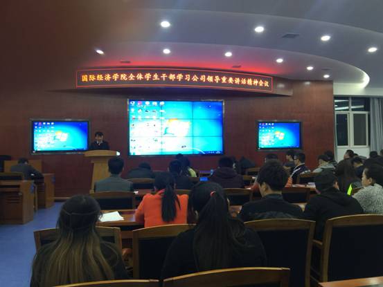 2016年3月2日晚上19:00,我院在经管类实验教学中心组织召开全体团学干部、学生党员、辅导员助理学习公司领导在2016年年会上的重要讲话精神会议,学院党总支副书记张孝峰出席会议并讲话,会议由学生科科长荣超主持。