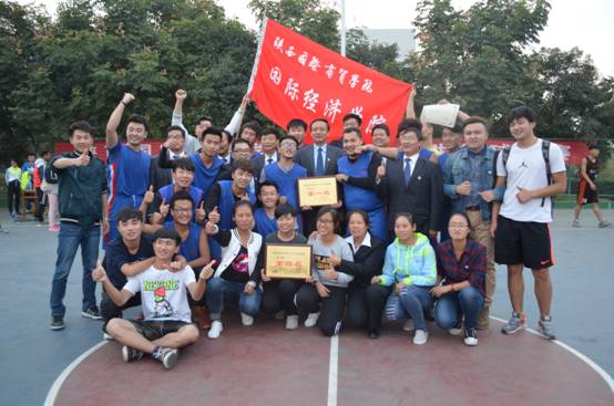 10月14日下午,陕西国际商贸学院2015年篮球联赛在篮球场落下帷幕,经过激烈的角逐,国际经济学院男子篮球队在赵超董事长、杨忠林书记、徐唯诚副院长、国际经济学院韦林珍院长的关怀下,在全体运动员团结、拼搏,永不言弃的信念下,最终以47:43荣获冠军。