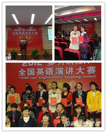 我院英语B1003班张叶乔同学在2012年“外研社杯”英语演讲赛陕西赛区决赛中