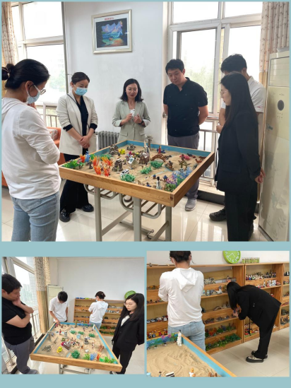 在了解了一定的沙盘知识和游戏规则后,李老师让大家选择自己选喜欢的沙具进行创造出自己理想的沙盘场景,活动中,老师们按照游戏规则进行沙具摆放。慢慢地,一幅美好的沙画世界通过老师们的共同创造,逐渐呈现在眼前。